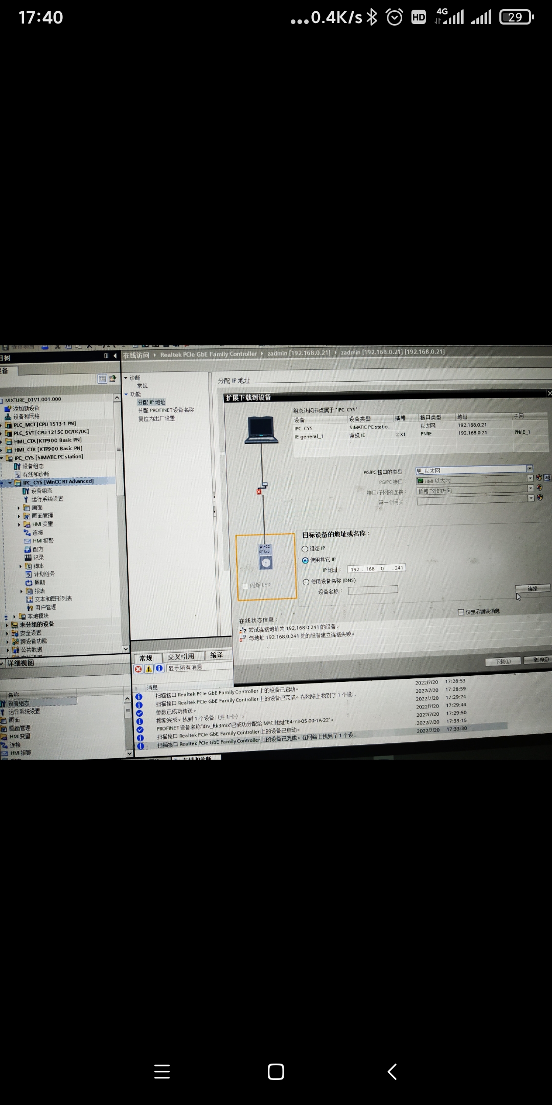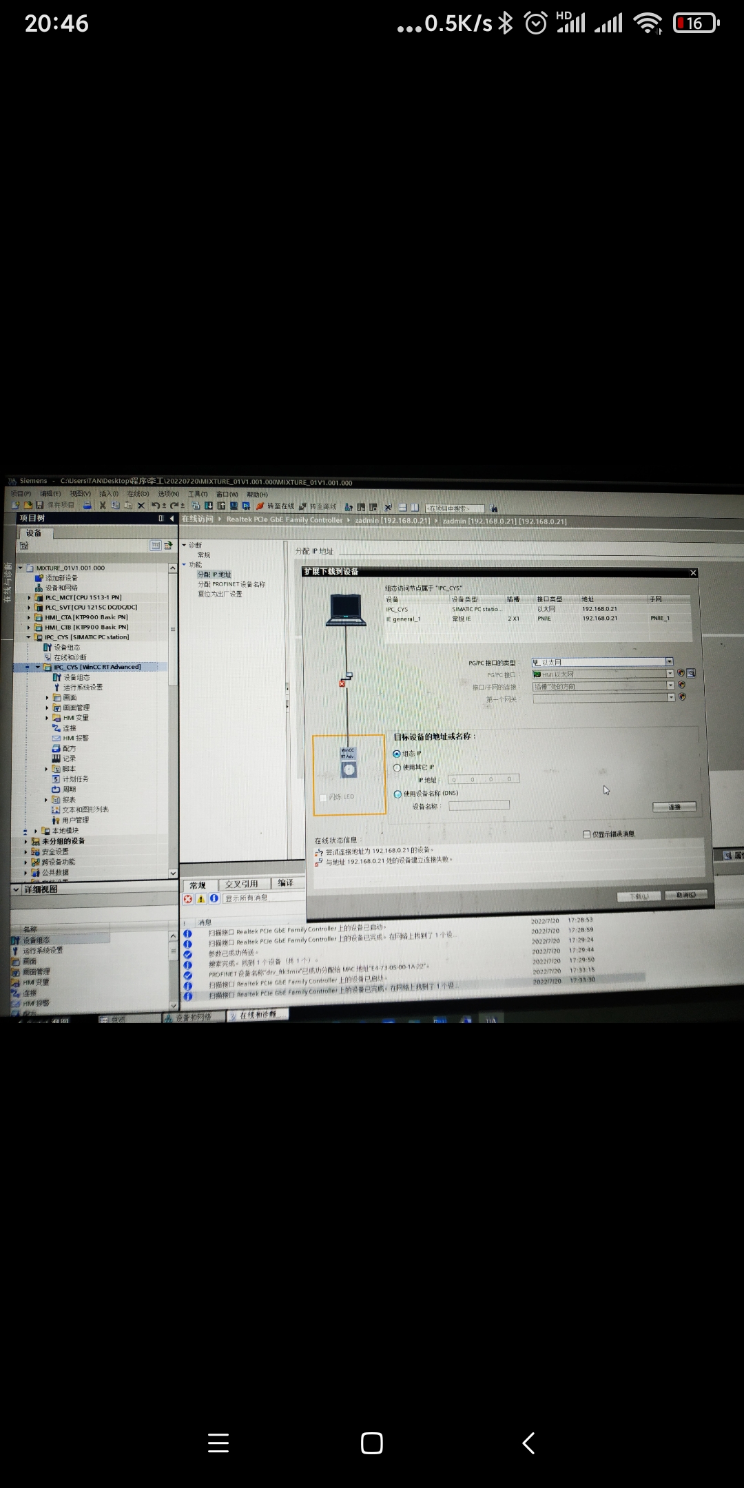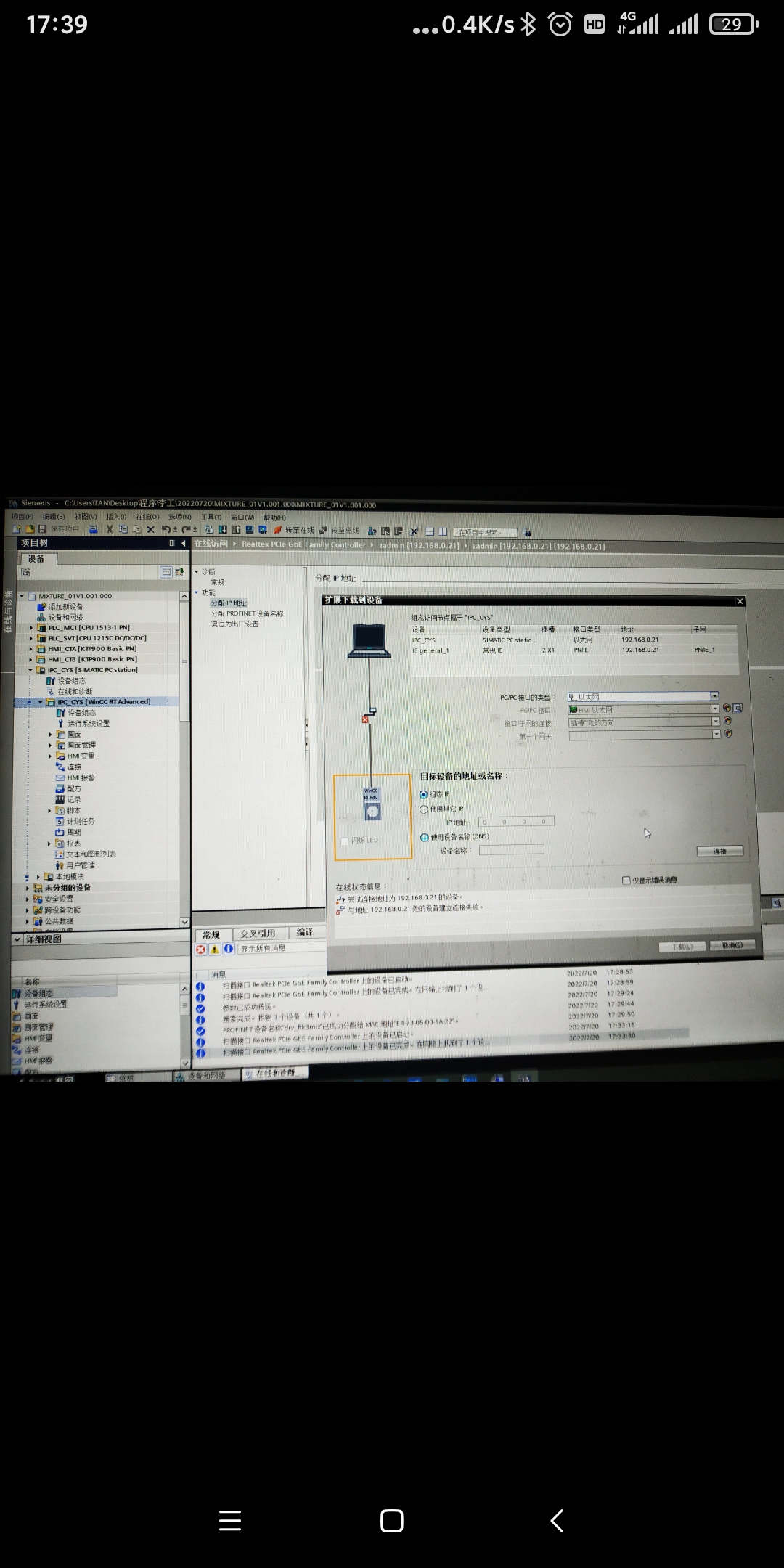 今天第一次往工控機(jī)里面下載觸摸屏程序,居然連不上?西門子軟件是公司人員安裝的,發(fā)貨出差項(xiàng)目工地這邊下載程序遇到問題,下載不了,求大師指點(diǎn)一下!😊