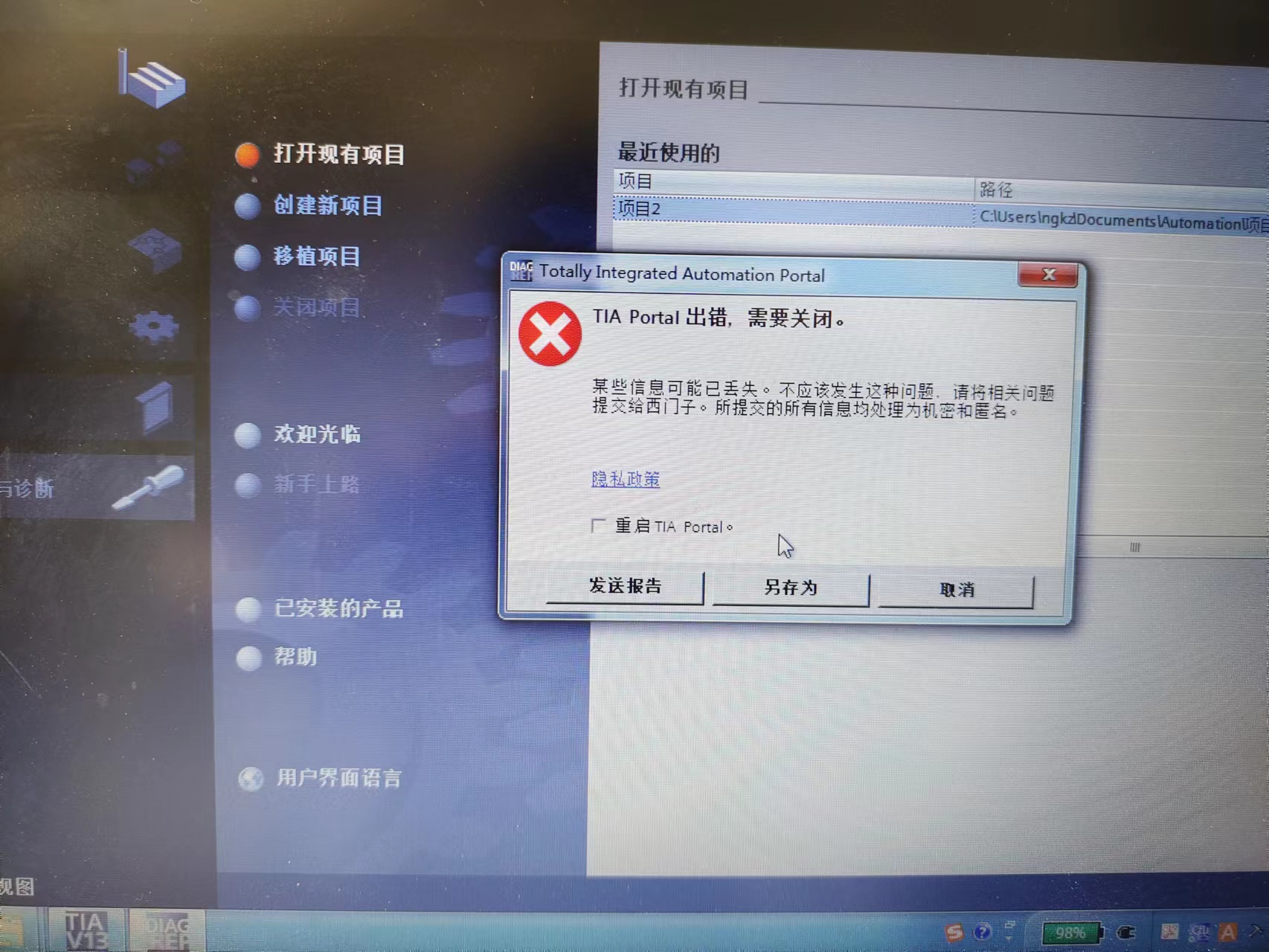 別人給的TIAV13的項目程序,程序打開時報錯,麻煩哪位大神幫忙打開后畫面截個圖,感激。!