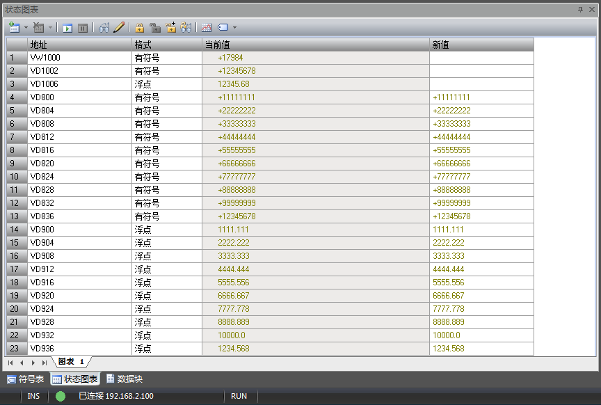 下圖是西門子S7-200Smart的數(shù)據(jù)監(jiān)控截圖: