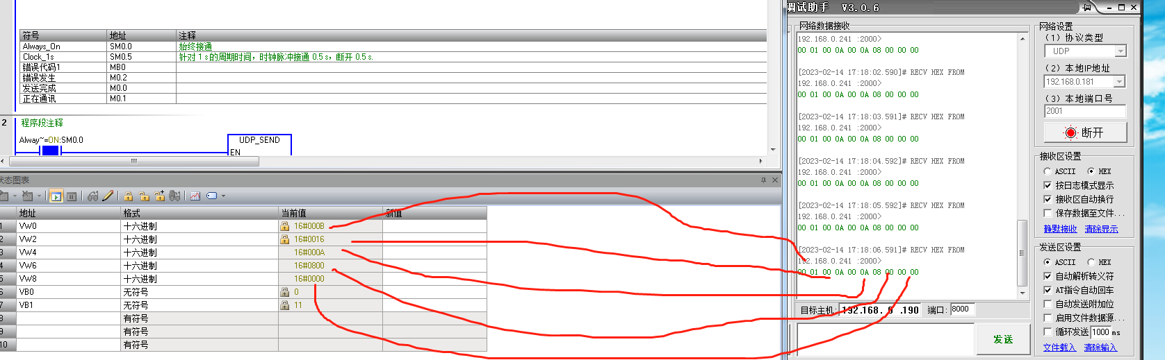 進(jìn)行UDP通訊時(shí),發(fā)送不同數(shù)值到電腦測(cè)試,發(fā)現(xiàn)無法強(qiáng)制改變值,請(qǐng)問一下大佬們?cè)趺刺幚砟兀?br />上方的強(qiáng)制,取消強(qiáng)制,還有別的寫入按鈕都是無效的