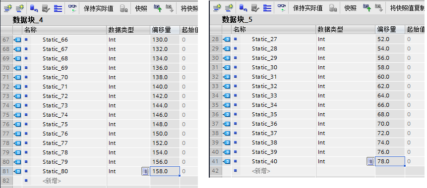 然后在西門子PLC內(nèi)建立數(shù)據(jù)塊_4和數(shù)據(jù)塊_5兩個DB,號碼分別是DB101、DB102,DB101寫入到AB的PLC,DB102接收AB的PLC數(shù)據(jù),都需要取消優(yōu)化訪問,字節(jié)數(shù)據(jù)與AB的PLC對應(yīng),如下圖,同樣新建立的DB須要下載后重啟PLC才會生效。