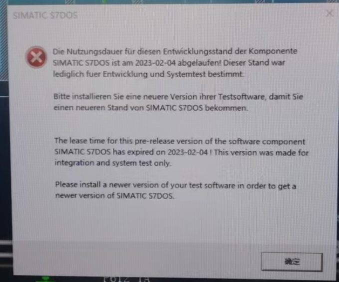 此軟件組件SIMATICS7DOS的預發(fā)布版本的租賃時間已于2023-02-04到期!此版本僅用于集成和系統(tǒng)測試