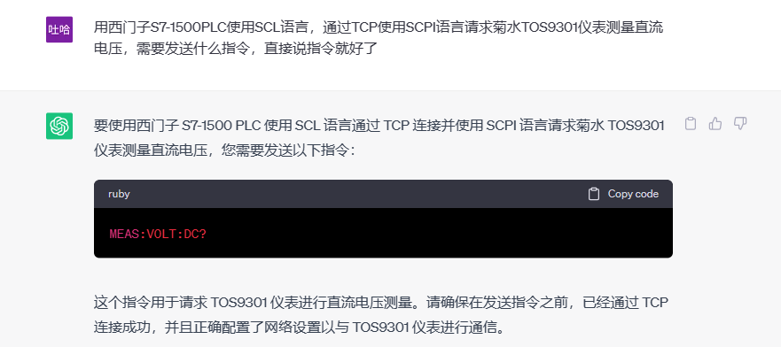 比如這個(gè)項(xiàng)目我想要的是,反饋給我當(dāng)前測(cè)量的電壓,我就只需要使用1500用tcp給儀表發(fā)送“MEAS:VOLT:DC? ”就可以收到儀表返回的電壓值,至于這個(gè)代碼是怎么來(lái)的,可以看說(shuō)明書的這個(gè)部分,見附件截圖。當(dāng)然你用別的PLC用TCP發(fā)送這個(gè)應(yīng)該也是一樣的。