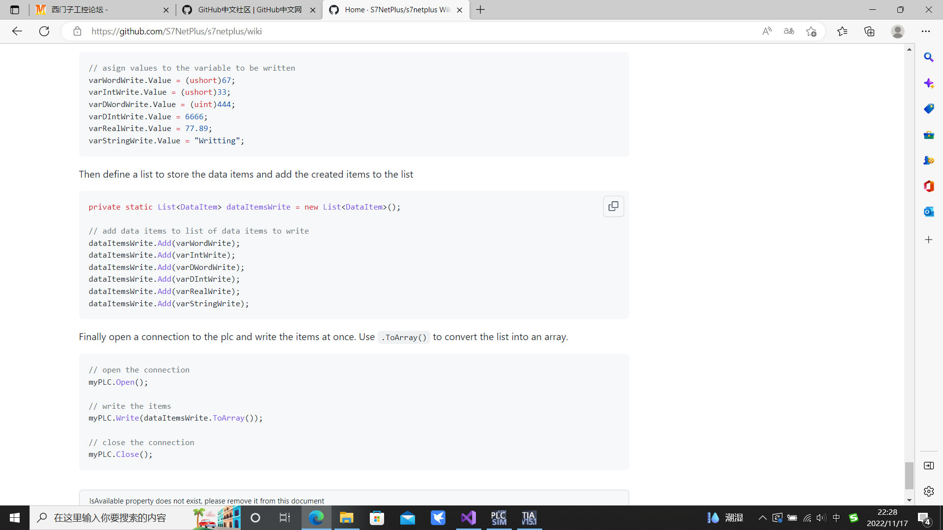 可以s7 plus 庫(c#環(huán)境) 和s7 1500仿真, 庫是外國人寫的,也有些缺陷, 最重要的是可以打包發(fā)送接收, 提高了訪問速度 。