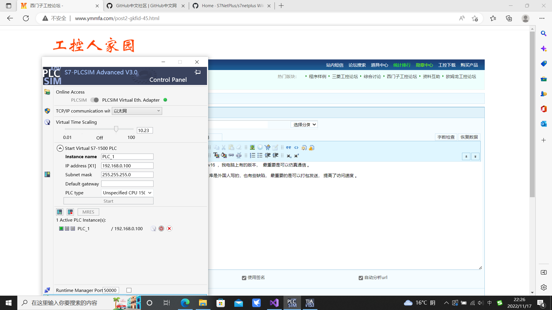 plcsim advanced 3.0 可以仿真 博圖v15 , v16 ,我電腦上有的版本, 最重要是可以仿真通信 。