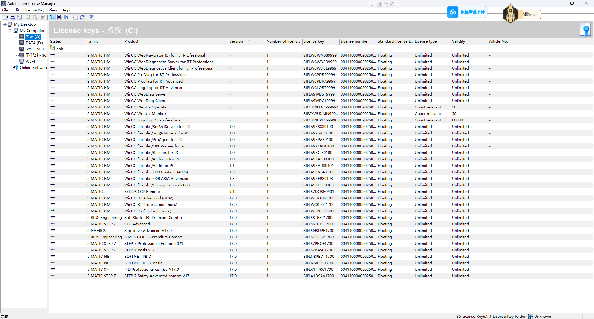 今天裝了TIA Portal V17 Update8,還裝了Automation License Manager V6.2 SP3,忽然發(fā)現(xiàn)不但wincc,連step7的授權(quán)都不認了,只有老軟件winccflexible 2008 SP5還能正常工作,這可是奇了怪了!