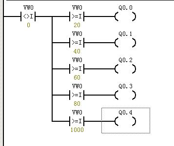 控制方法在觸摸屏上輸入N米后,PLC就有幾個(gè)點(diǎn)的輸出。比如輸入1米話PLC就有五個(gè)點(diǎn)輸出信號(hào),輸出點(diǎn)可以從左面,右面,中間向兩邊算起,
