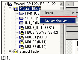 1、在指令樹的Project(項(xiàng)目)中,以鼠標(biāo)右鍵單擊Program Block(程序塊),在彈出的快捷菜單中選擇Library Memory。如圖1所示: