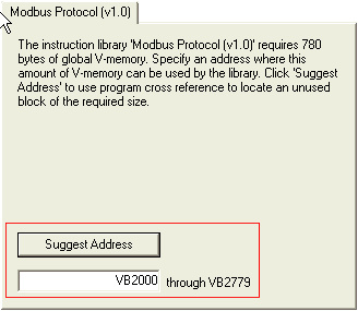 圖2. 缺省情況下是從VB0開始,但因?yàn)榕cModbus的保持寄存區(qū)沖突,所以手動(dòng)改為VB2000。按“Suggest Address”按鈕也可以自動(dòng)分配。