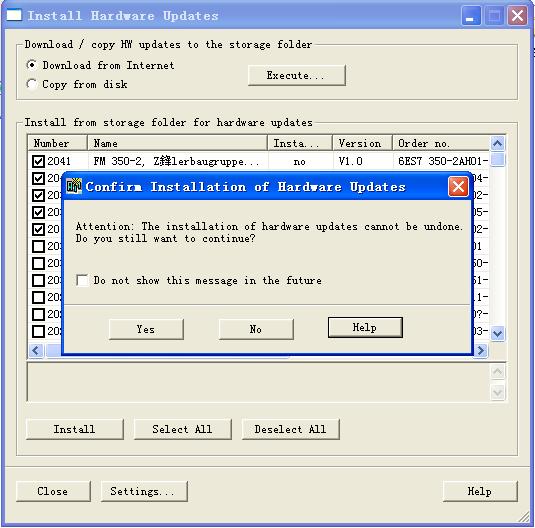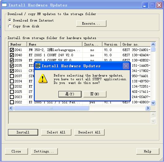 7.彈出警告窗口,在升級硬件時必須關(guān)閉所有的STEP7應(yīng)用程序。直接點“是”,軟件自動關(guān)閉。