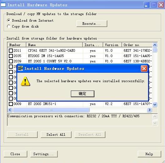 10.點擊“確定”,升級完成。所有硬件安裝完畢。重新打開STEP7軟件就可以組態(tài)了。
