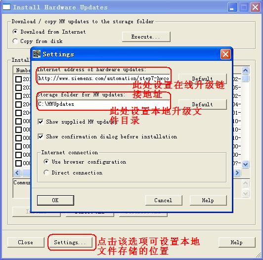 5.如果需要本地升級,則點擊“Settings……”對硬件升級文件存儲的文件夾目錄進行設(shè)置。
