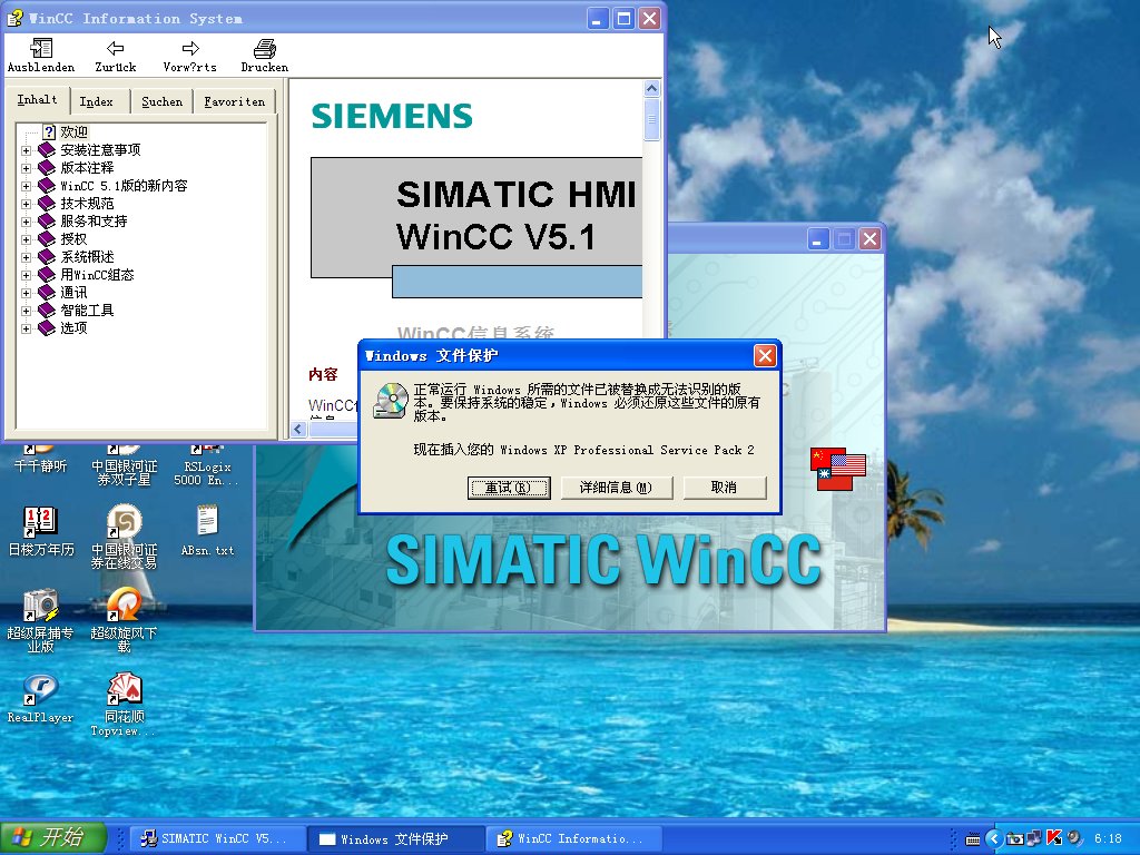 Wincc5.1可以被安裝在XP SP1系統(tǒng)上,但是西門子官方認(rèn)為不推薦,因為即使安裝上去了,也不能正常使用,會導(dǎo)致項目指針調(diào)用錯誤。