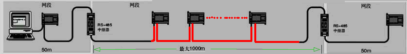 如果要延伸1000米,那么你的中繼器間不可掛接控制器。