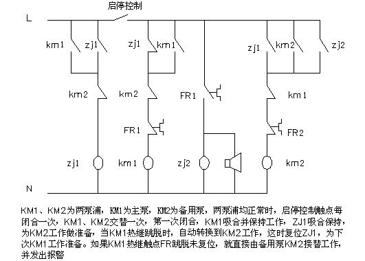 就以計數(shù)器c0為列吧,假如第一臺水泵正在工作,熱繼電器有動作,送1至C0,同理第二水泵故障,送2至C0。C0=1,水泵二啟動,C0=2,水泵一啟動。注意都有故障!