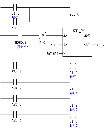 附件為一個(gè)彩燈閃爍的程序,本想在啟動(dòng)后,每隔1秒就會(huì)有一個(gè)燈亮起,但是試了很久也沒(méi)有結(jié)果
