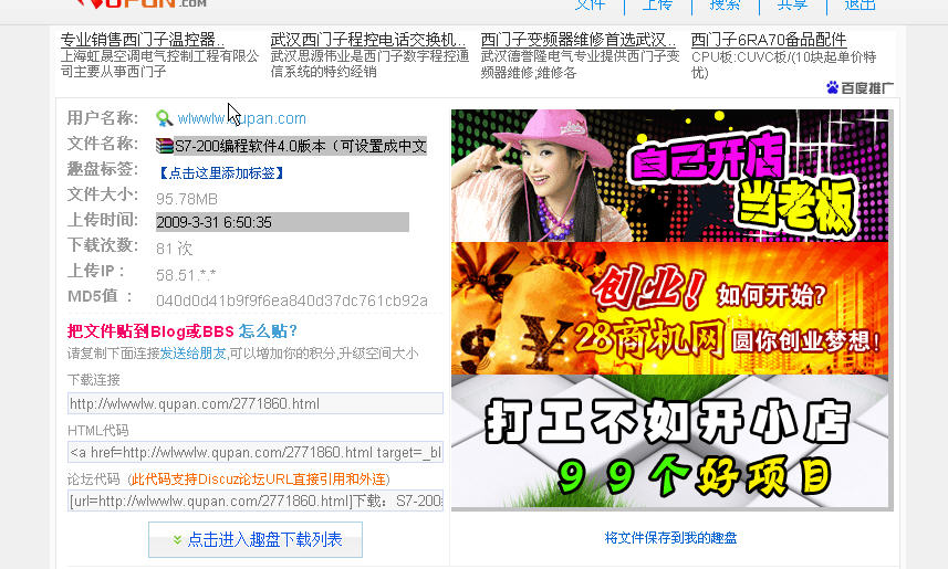http://wlwwlw.qupan.com/2771860.html這是我的趣盤網(wǎng)址里有,S7-200編程軟件4.0版本(可設(shè)置成中文).part1.rar,一共3個(gè)壓縮包,要全部下載完才能解壓。