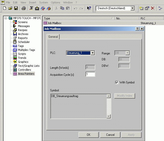 在 ProTool 中創(chuàng)建“作業(yè)信箱”的區(qū)域指針。