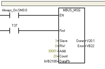 求一個S7-200與一般儀表的通訊程序,儀表支持485通訊。   我用modscan32 軟件能在電腦上讀到 儀表中的數(shù)據(jù),但儀表跟200PLC通訊讀不到數(shù)據(jù),主要程序如下