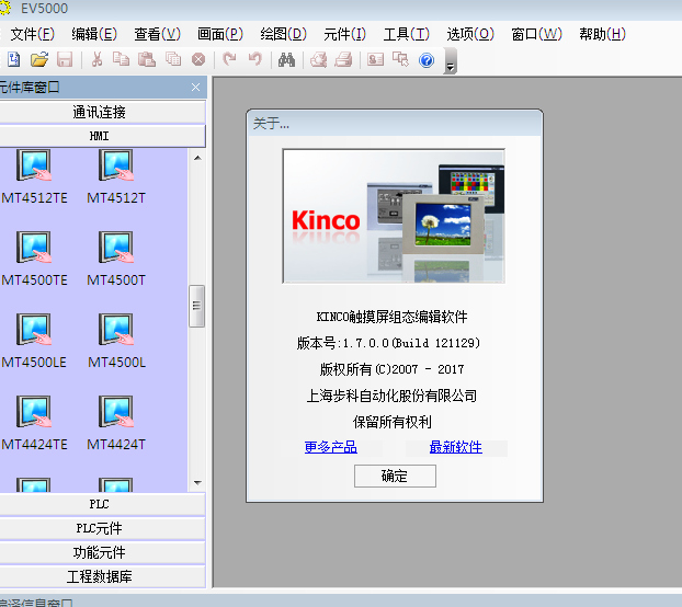 MT4500T觸摸屏是步科的,編程軟件用EV 5000 V1.0.0或更新。