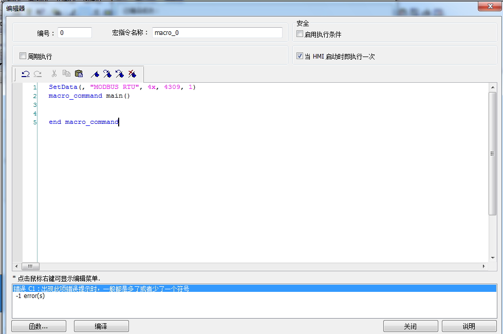 且你要給的數(shù)值不能直接給,例如setdata(1234,“MODBUS RTU”,4X,4309,1)這樣就是錯(cuò)誤的
