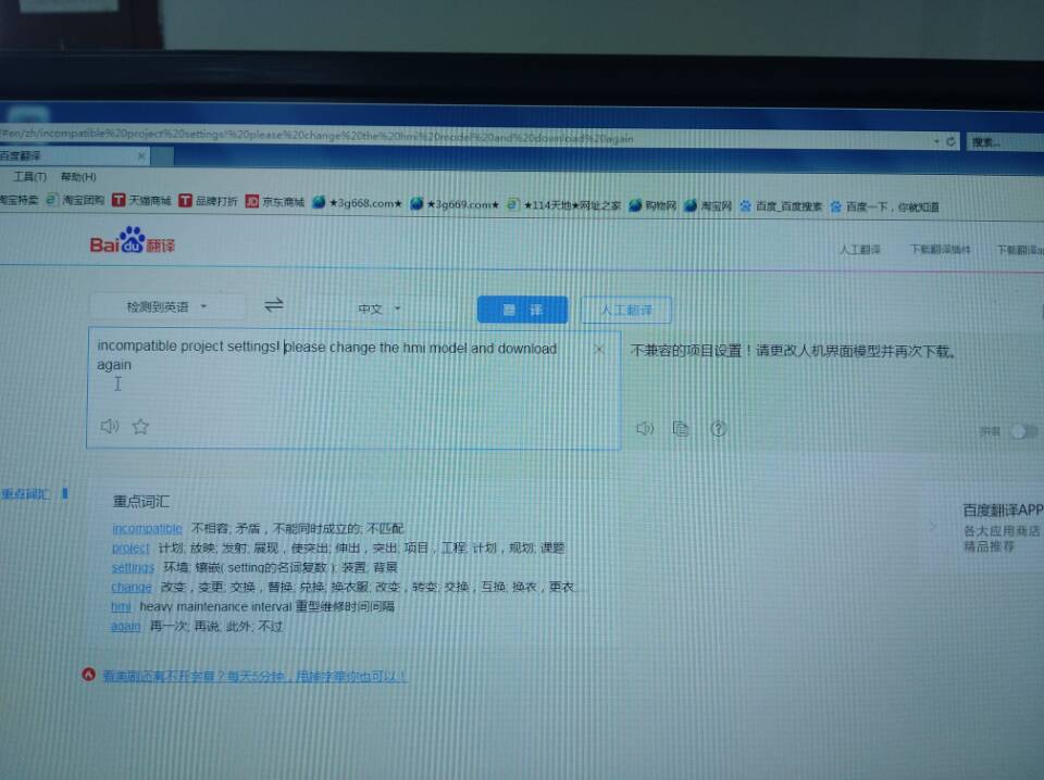 買了一批TK6070IP觸摸屏,前面三臺分別用在別的地方,都還算正常。最近使用第四個觸摸屏?xí)r,下載工程后畫面一閃后出現(xiàn)一個彈窗,然后就只剩下光光的屏幕和上面的一個小鼠標(biāo)了。后來把彈窗照下來內(nèi)容翻譯后,說是“”不兼容的項(xiàng)目設(shè)置!請更改人機(jī)界面模型并再次下載“,查看HMI設(shè)置都對,之前的工程裝入之前的觸摸屏都可以正常工作,百思不得其解。