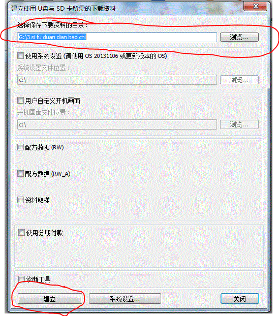 2、 點擊“工具” 下拉菜單-“建立使用在 U 盤與 CF 卡所需的下載資料” , 點擊瀏覽按鈕,