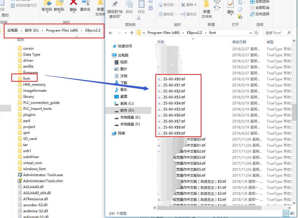 在你自己電腦上編譯時(shí)候會(huì)在編譯軟件的安裝目錄下面創(chuàng)建字體庫,位置如圖所示,注意名字和你的編譯后的名字是一樣的,這個(gè)很關(guān)鍵!