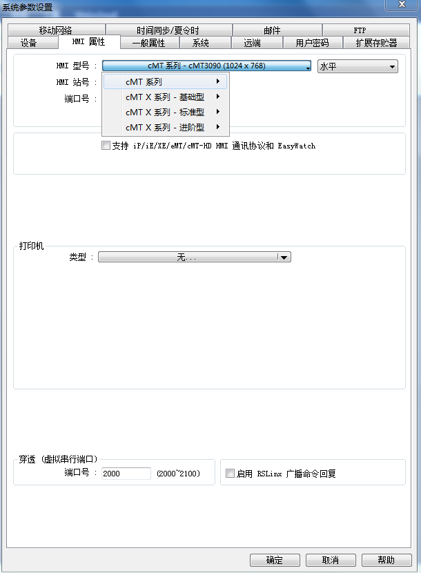 求助大俠們,如題怎么觸摸屏軟件上的HMI屬性切換型號中只有CMT系列,我想切換成MT系列的觸摸屏怎么辦?????