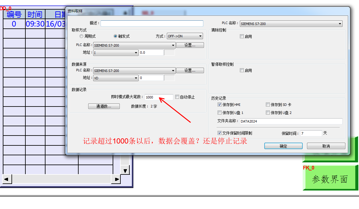 剛開始學(xué)習(xí)這個資料取樣功能,目前可以實現(xiàn)表格數(shù)據(jù)的自動記錄,我看說明是可以記錄1000條信息,如果記錄到1000條消息,不清楚的話,新記錄是覆蓋呢,還是停止記錄了?謝謝 [atta