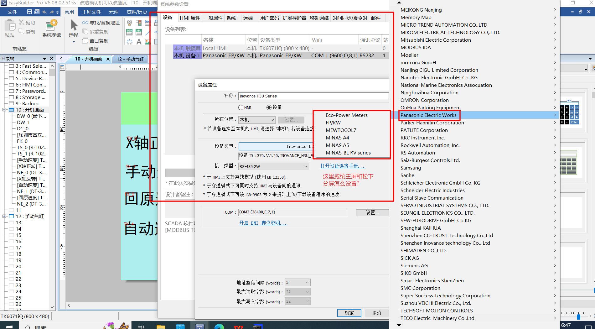 現(xiàn)在我想新增加一個(gè)威綸MKT6070IQ的觸摸屏,想要用主屏+分屏控制。如果我想用威綸MKT6070IQZ做主屏,松下GT707為副屏。松下PLC還有松下觸摸屏里面 的參數(shù)應(yīng)該怎么設(shè)置?威綸里面的參數(shù)應(yīng)該怎么設(shè)置?有哪位大佬用過(guò),指點(diǎn)一下。下面是我再網(wǎng)上找的資料,但是還不夠全面。