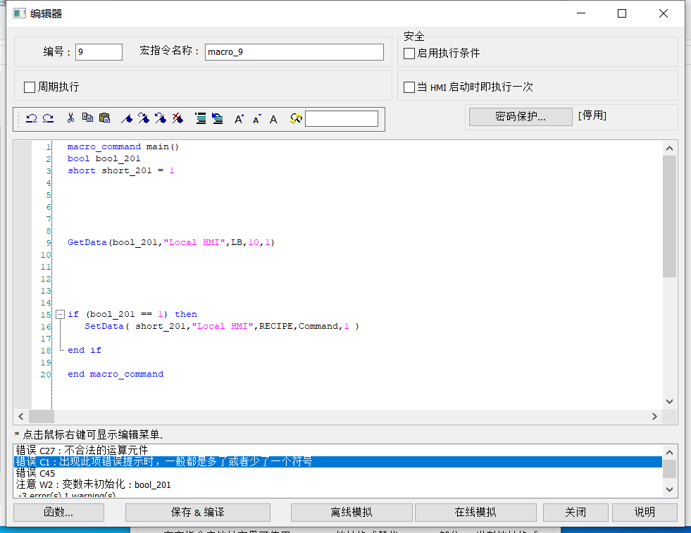 各位大佬,如何用宏指令實現(xiàn)系統(tǒng)配方的按鈕?不管怎么弄都會報錯。