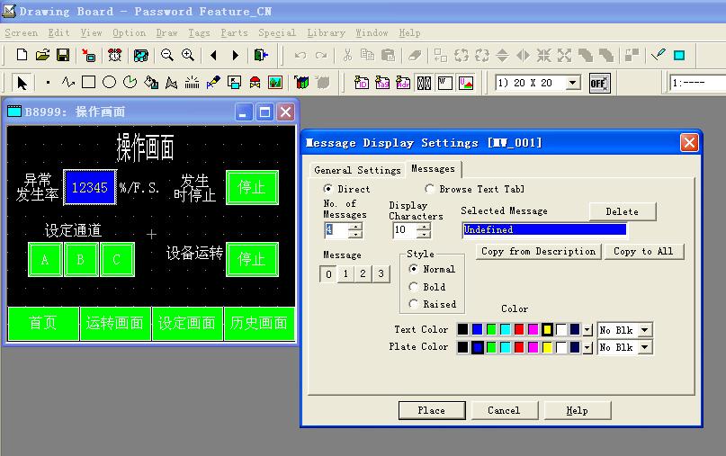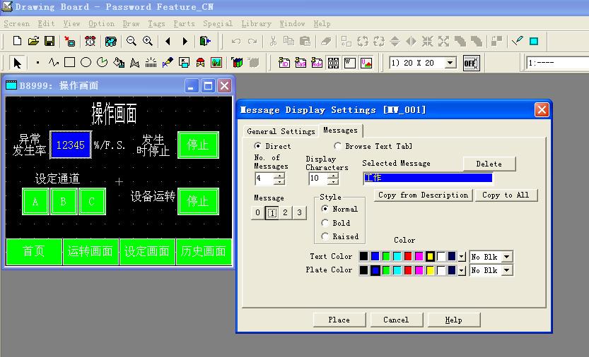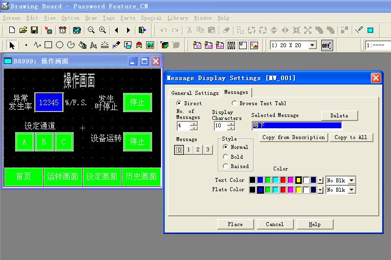 引用引用第4樓sxlsal于2009-06-17 11:30發(fā)表的 : 屏上的文字根據D100的值,而顯示不同的內容,應用什么如D100=0 顯示"等下"D100=1 顯示"工作"應怎么做?