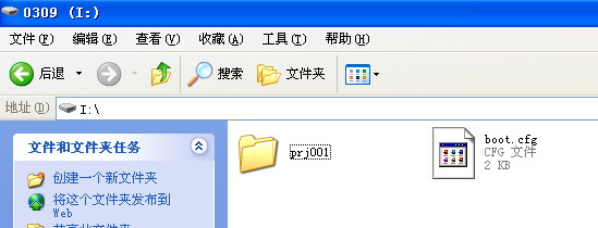 U盤“I”里面的文件"prj001"和 boot.cfg 就是用GP-PROEX 里的傳輸工具創(chuàng)建的啟動數(shù)據(jù)啊..