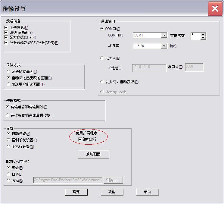 在傳輸設(shè)置記住要勾那個(gè)模擬!