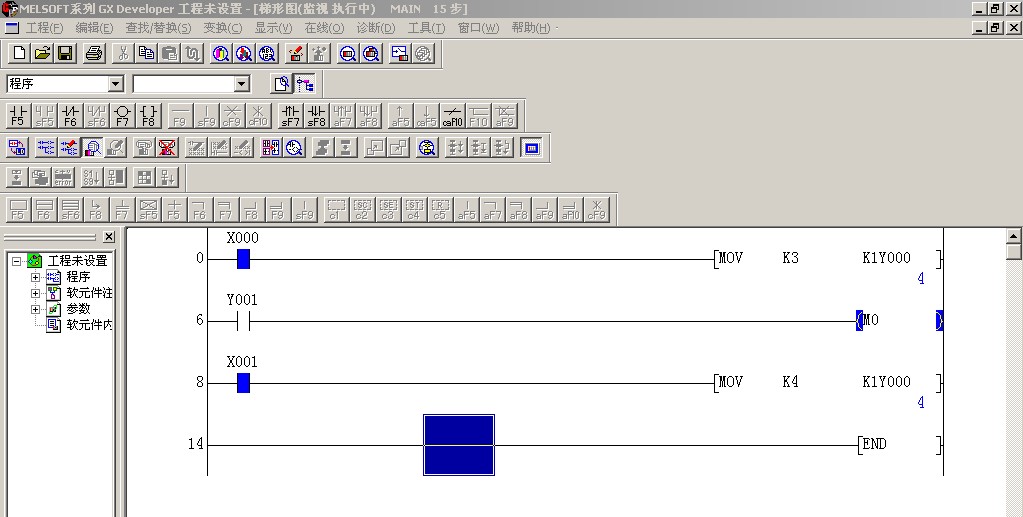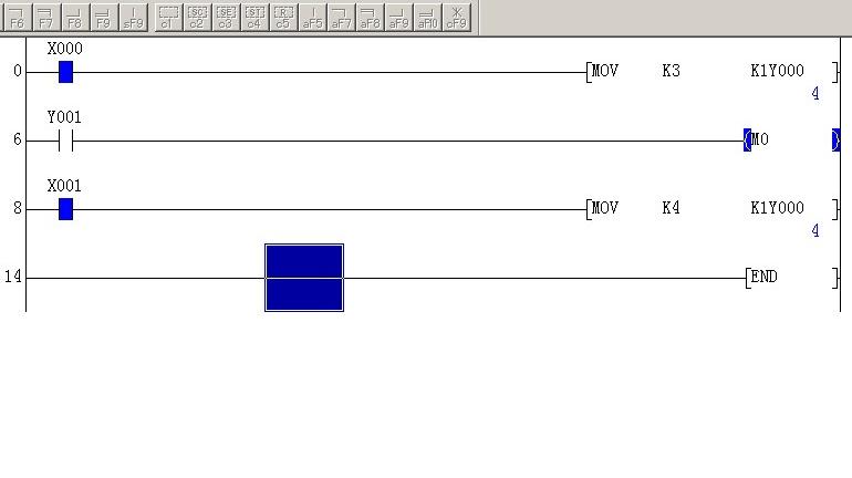 為什么在X0和X1同時(shí)得電的情況下,Y1不得電,但M0線圈卻得電,我自個(gè)分析,MOV  K3  k1y0將Y1變?yōu)?,但為什么顯示不出,通過內(nèi)存顯示,Y1的確不得電,Y1不得電的原因在于mov k5 k1y0在y1斷電了。