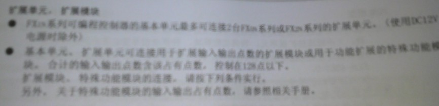 說明書的原話是:基本單元、拓展單元可連接用于擴展輸入輸出的點數(shù)的擴展模塊或用于功能擴展模塊的特殊功能模塊。合計的輸入輸出點數(shù)含該占有點數(shù),控制在128點以下。