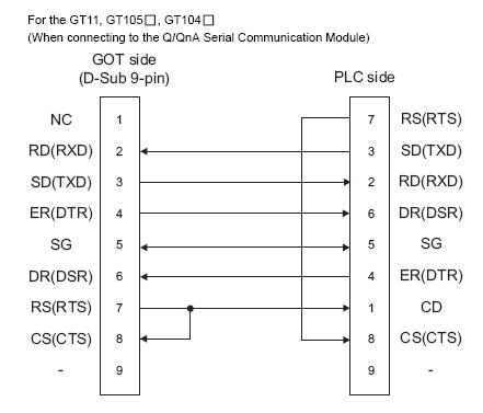 誰有QJ71C24N-R2與GT1050-QBBD的d-sub9pin通訊線接法,急需!謝啦!