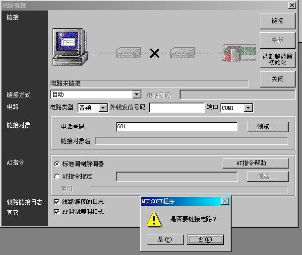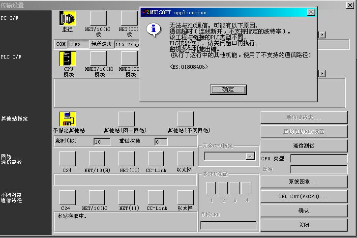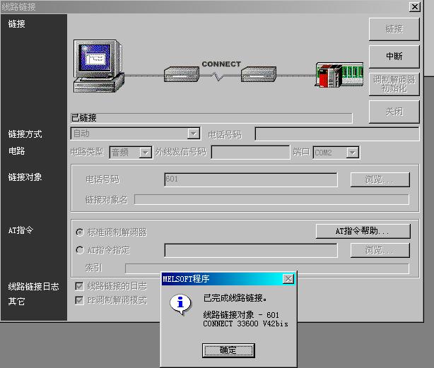 [attachment=6885] [attachment=6885] 我嘗試用56K的外置式調(diào)制解調(diào)器對(duì)FX2N的PLC進(jìn)行遠(yuǎn)程編程及監(jiān)控,軟件是GX-DEVELOPER V8.5版本,D8120通訊格式設(shè)為H C881,F(xiàn)X2N上安裝了FX2N-232-BD功能擴(kuò)展板,PLC側(cè)的調(diào)制解調(diào)器是用RS232 C 之9針D-SUB與FX2N-232-BD直聯(lián),但是每次撥號(hào)都只能是電腦與PLC側(cè)的調(diào)制解調(diào)器聯(lián)接成功,而GX-DEVELOPER 軟件不能與FX2N通訊,請(qǐng)高手指點(diǎn)迷津。相關(guān)的連線(xiàn)信息及報(bào)錯(cuò)信息如下圖: