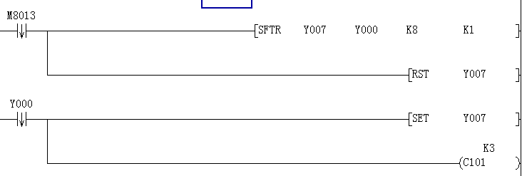 你右移位指令中用到Y(jié)7輸出,然後又在置位指令中用到Y(jié)7,肯定就存在Y7輸出混亂(雙線圈問題)