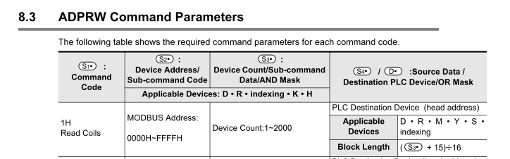 FX3U-485ADP模塊里的ADPRW指令是什么意思?謝謝?  【ADPRW     H1   K1000     k1    D7500   K0】