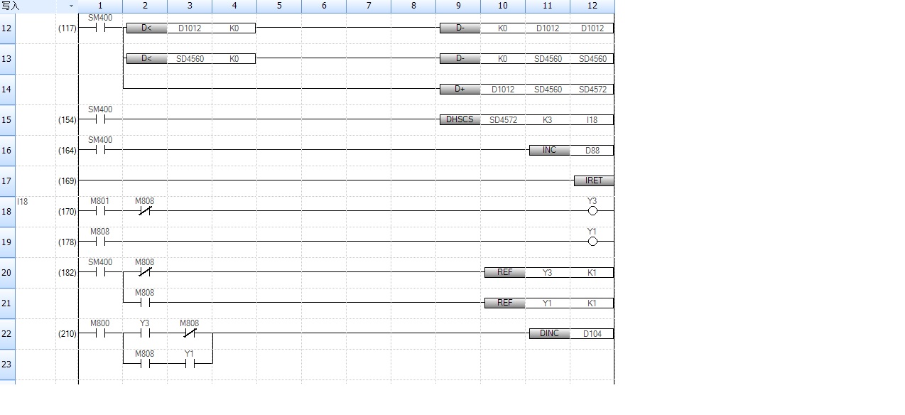 高速計(jì)數(shù)CH2產(chǎn)生一個(gè)比較中斷I17,在I17的中斷程序中再用CH3高速計(jì)數(shù)器比較產(chǎn)生一個(gè)中斷I18,I17中斷正常運(yùn)行,但I(xiàn)18中斷卻運(yùn)行不了。 之前用永宏的可以 |