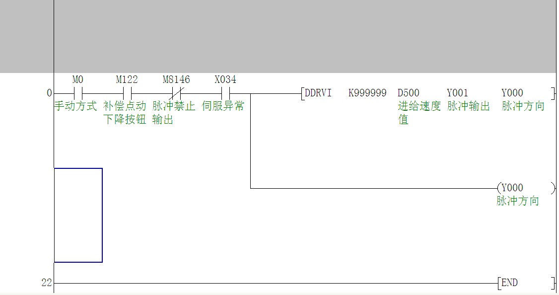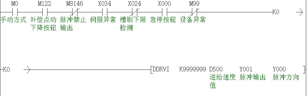 糾正一下,DDRVA和DDRVI 前面觸點(diǎn)條件斷開后,都是減速停止! 方向不用單獨(dú)置ON,DDRVI 的脈沖數(shù)設(shè)為負(fù)數(shù)就反轉(zhuǎn)了!