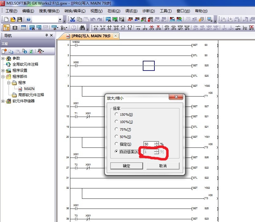 GX-works2梯形圖放大縮小中的 自動(dòng)倍率 為什么不能選擇多少列?請(qǐng)高手指點(diǎn)。。