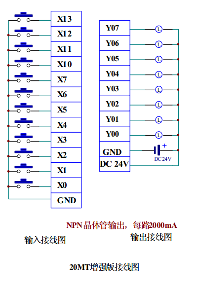 你那圖上GND就是0V,就是公共端,就是COM,把GND和X0相連,X0就有輸入了。輸出要接220V的話,要加中間繼電器。這是個晶體管輸出的PLC。不能直接接交流。
