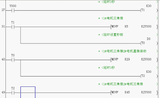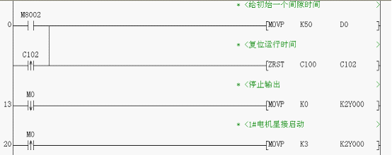 我利用置位的M0去觸發(fā)1#電機(jī)星接啟動(dòng)