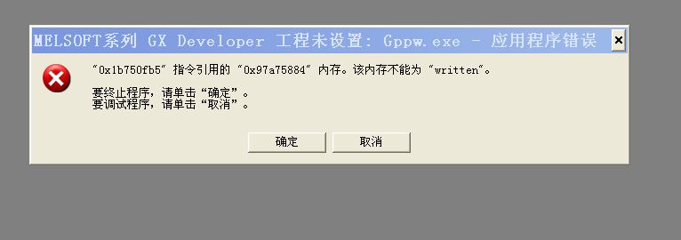 以前裝過GX DEVELOPER 軟件,后來打開后老是出錯,接著卸載,清理注冊表,重新安裝,裝上后打開軟件顯示:can not allocate share menory,接著新建工程,出錯如圖。