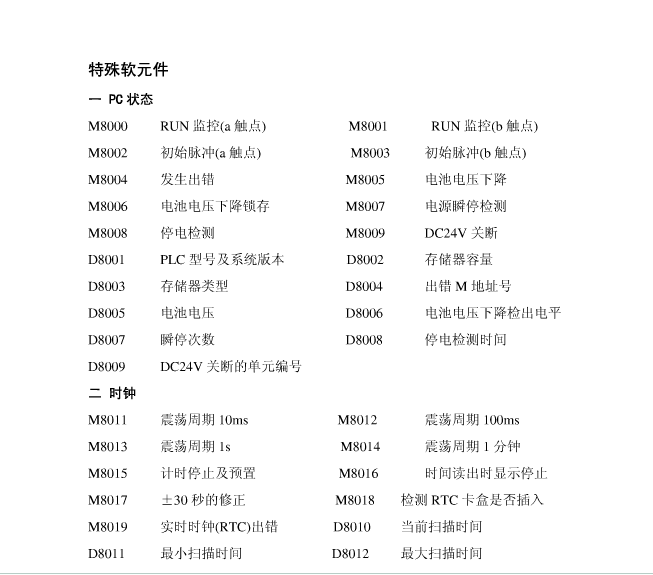 三菱M8000以后的特殊輔助繼電器的用途解釋如