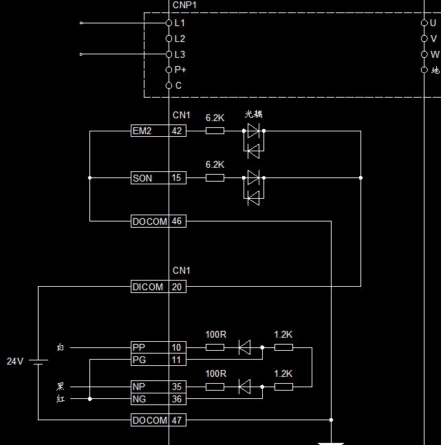 原型號(hào)是MR-J2-70A 和 MR-J2S-70A , 脈沖由單片機(jī)發(fā)出,就過來3根線 ,分別接 CN1A的 NP 和 PP ,另外一根接到CN1A的 12 和13腳,也就是說12和13腳短接到一起。 CN1B 是 3-13短接 15-20短接。 看接法明顯是 差分輸入,只是,正反轉(zhuǎn)的差分信號(hào)有了公共點(diǎn),和手冊(cè)標(biāo)準(zhǔn)推薦的 不太一樣,但是可以正常運(yùn)行。