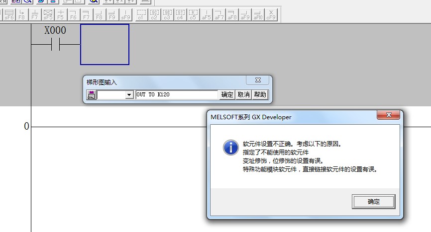 就是在編寫梯形圖時,輸入常開觸點后,再想輸入個計時器“T0 K120",就彈出這個框了。 |